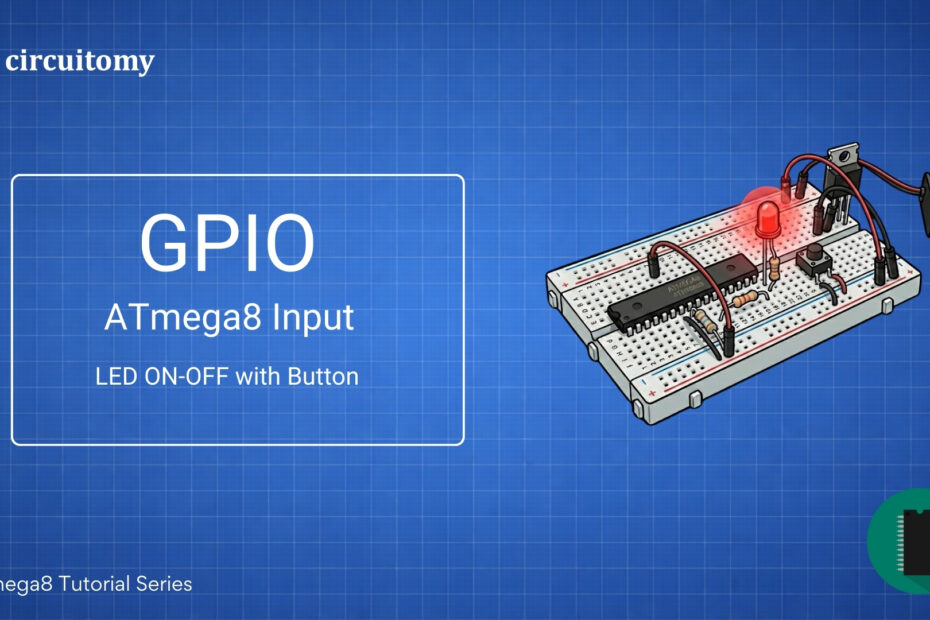 LED and Button with ATmega8 – AVR GPIO Input Tutorial (Beginner Friendly)