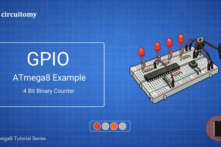 Today, we will learn how to interface a push button with the Atmega8 microcontroller using a hardware pull-up resistor. This project will help you understand how microcontrollers read button inputs.Let’s break everything down in a simple way!A push button is a simple switch that connects or disconnects the circuit when you press it. Microcontrollers like…